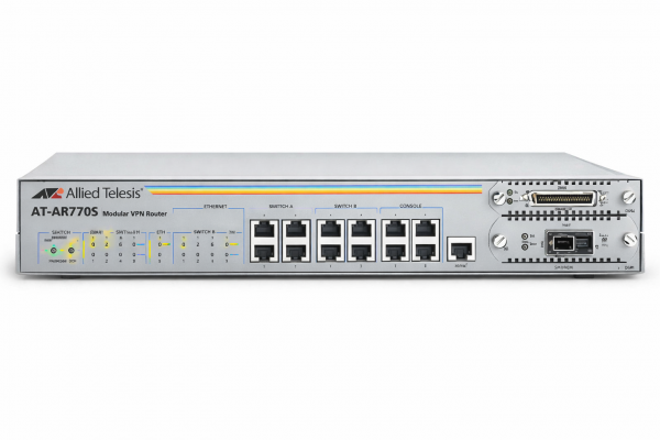 Маршрутизатор Allied Telesis AT-AR770S устанавливает новые стандарты производительности в своем классе. Главная особенность модели — комбинированные WAN-порты, которые позволяют выбирать между традиционным медным подключением (RJ-45) и оптическим (SFP). Если установлен SFP-модуль, соответствующий медный порт автоматически отключается, что обеспечивает максимальную гибкость при интеграции в любую сетевую среду.