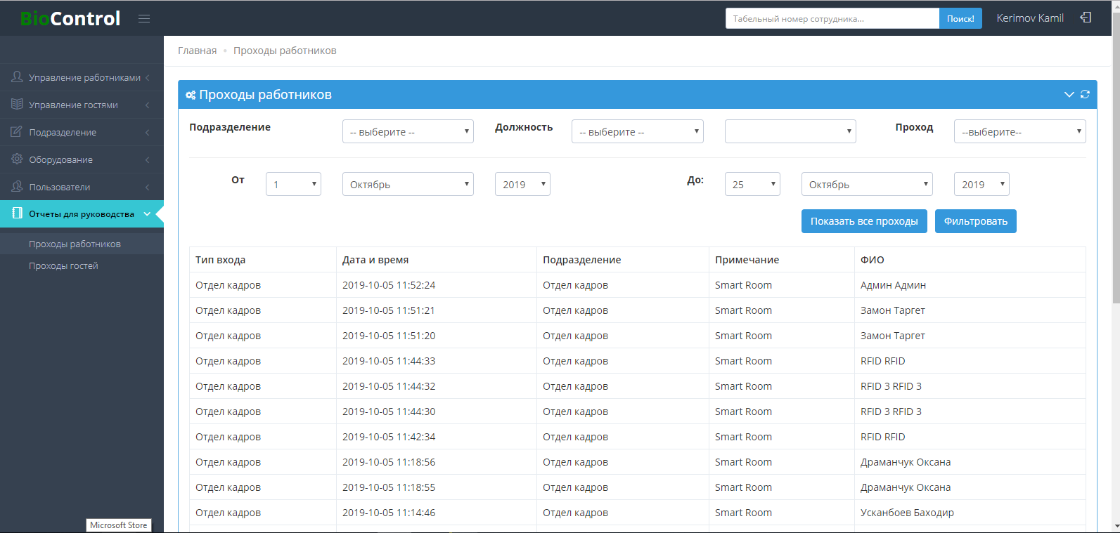 - Контроль перемещений сотрудников по территории организации